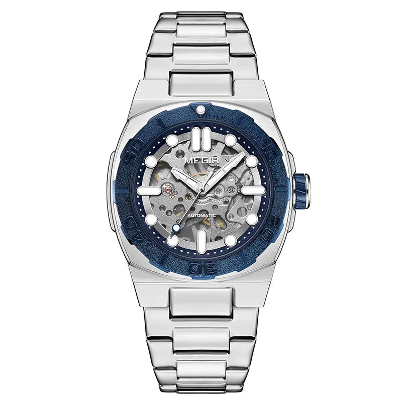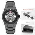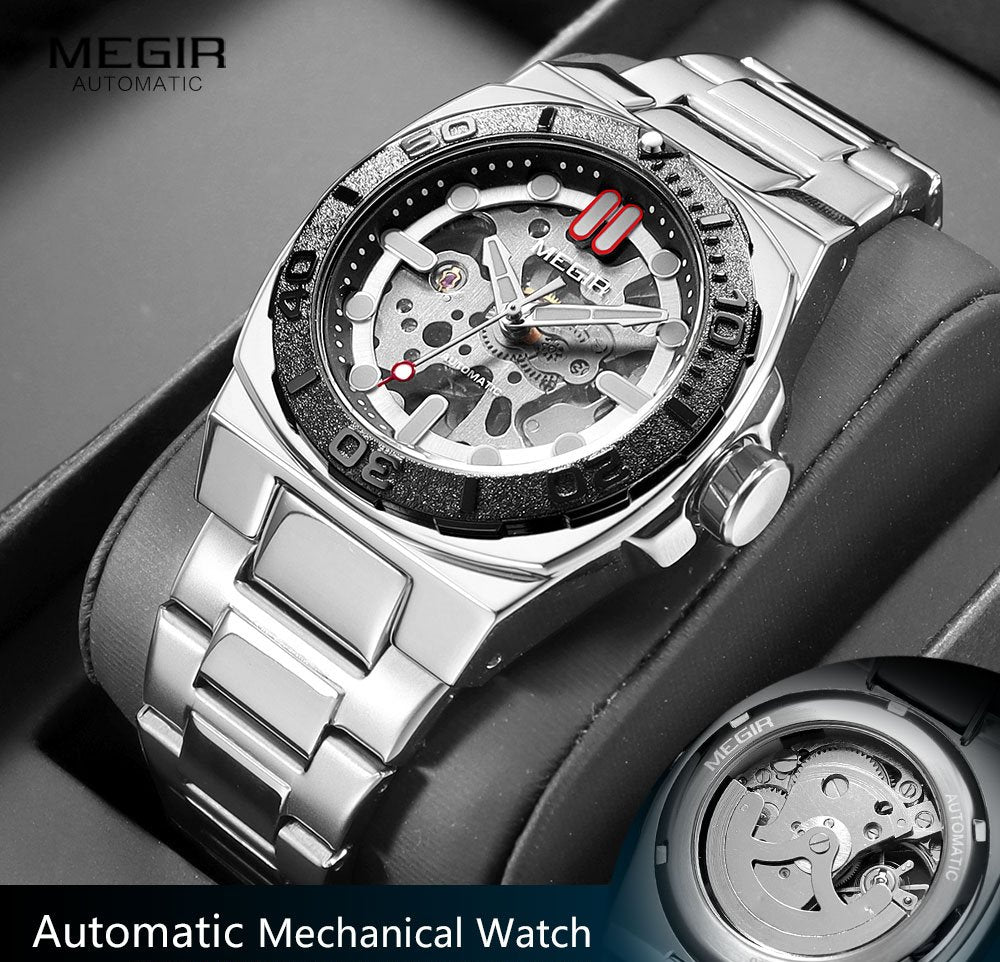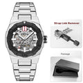This premium timepiece is designed for the modern professional who appreciates the intricate art of watchmaking. Featuring a stunning skeleton dial, this watch allows you to view the complex inner workings of the automatic self-wind movement as it powers itself through your natural wrist movements. The 14mm thick stainless steel case and matching band provide a weighted, high-quality feel suitable for any business or formal setting. With a numberless display and luminous hands, this watch offers a clean, minimalist aesthetic that remains readable in low-light conditions.