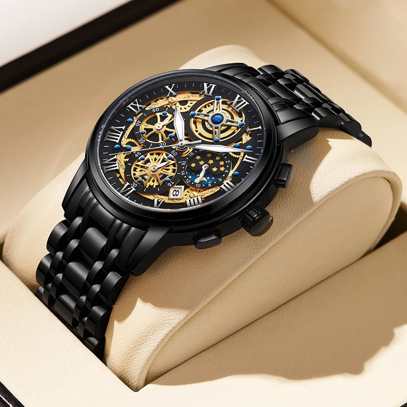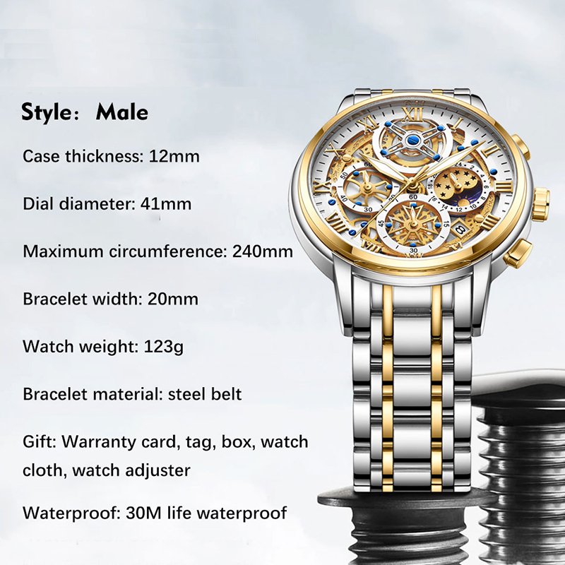 | Advanced Integrated Functions | Equipped with a built-in stopwatch, auto-date, and backlight—features rarely found in a skeleton-style watch. |