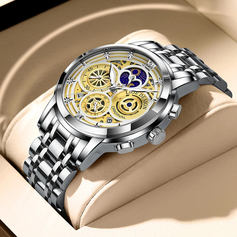 | Full Stainless Steel Build | Both the case and the bracelet are crafted from high-quality steel for maximum durability and a premium shine. |