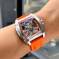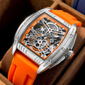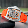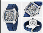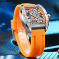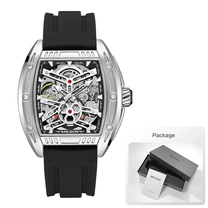 Elevate your wrist game with this Stylish Tonneau Automatic Wristwatch, a perfect blend of modern fashion and casual utility. Featuring a distinctive barrel-shaped alloy case, this timepiece offers a sophisticated skeleton style that showcases the mesmerizing inner workings of its mechanical movement. Whether you prefer the ease of automatic self-winding or the classic ritual of manual hand-winding, this watch is designed to keep perfect time without the need for batteries. Paired with a flexible, high-durability silicone sport band, it provides a comfortable fit that transitions effortlessly from the office to the weekend.