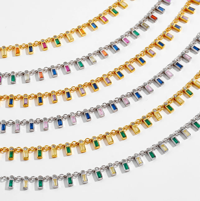 Luxury Style 925 Sterling Silver Colorful Zircon Choker Necklace (color options)