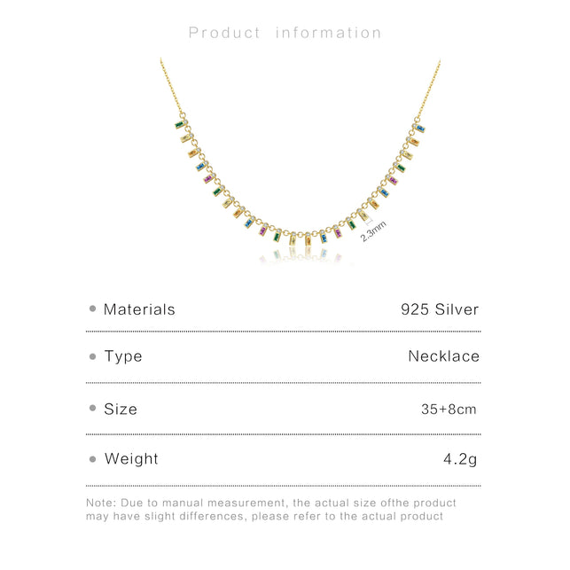 Add a captivating touch of color to your neckline with this 925 Sterling Silver Colorful Zircon Choker Necklace. This certified Fine jewelry piece is designed in a Classic style, featuring an array of brilliant Zircon stones that provide a sophisticated burst of color. Crafted from genuine 925 Sterling Silver (stamped S925), this necklace is available in either luxurious Gold Plating or sleek Platinum Plating. Verified by a CMA Certificate (Number: M210709000646), this piece is verified, perfect as a Gift for any special occasion for Women.