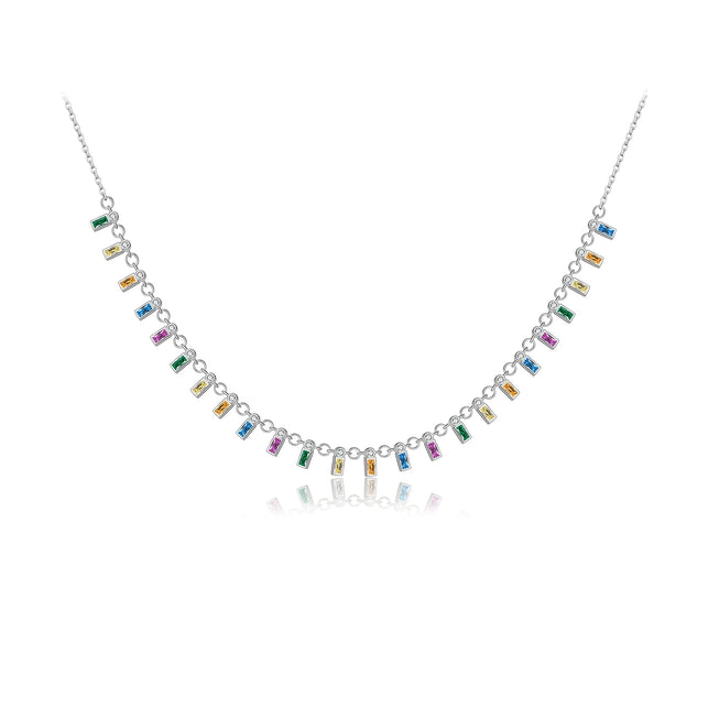 925 Sterling Silver Colorful Zircon Choker Necklace | Fine Jewelry